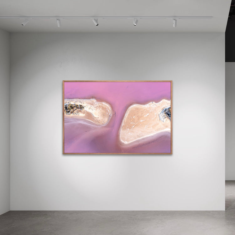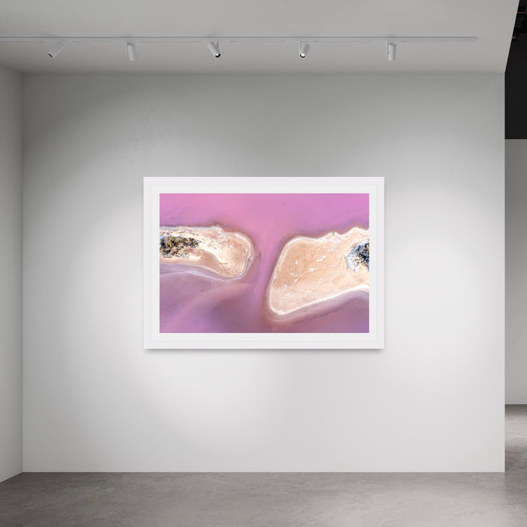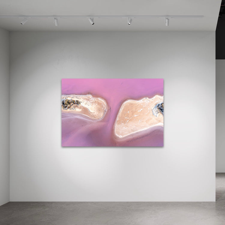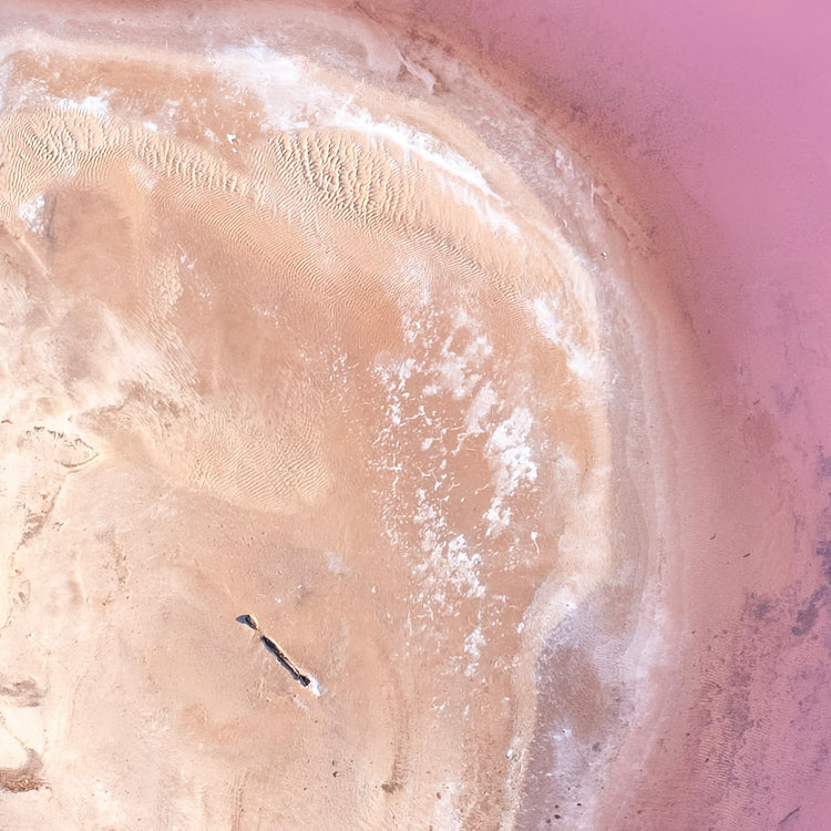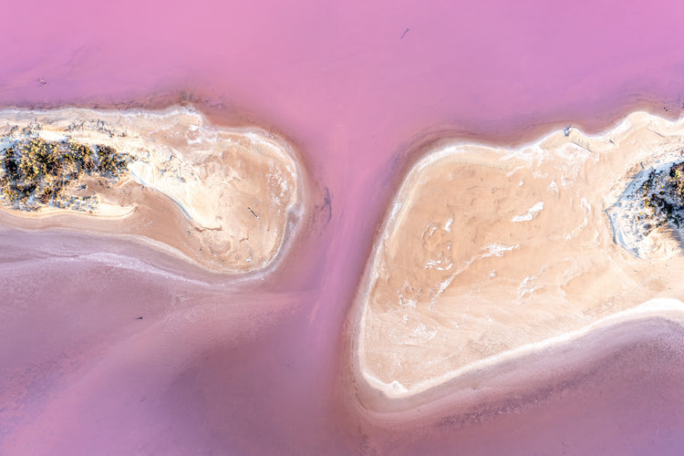 The stunning pink salt waters of Lake Tyrrell in winter, at a point where two islands kiss.
