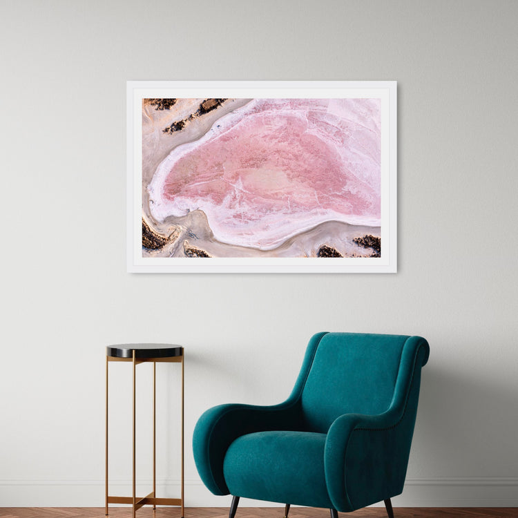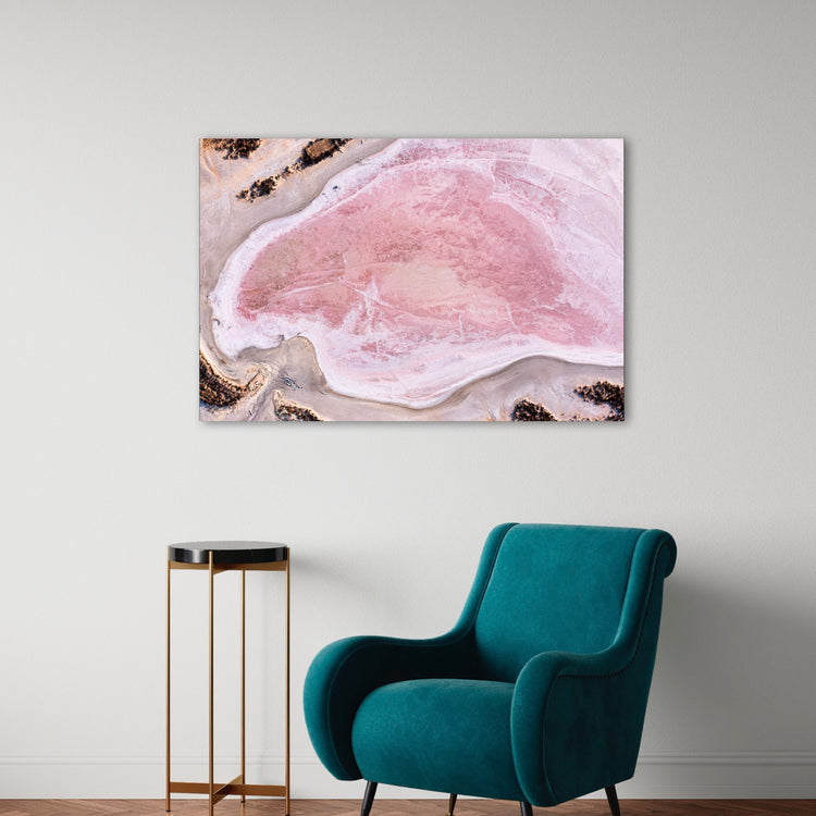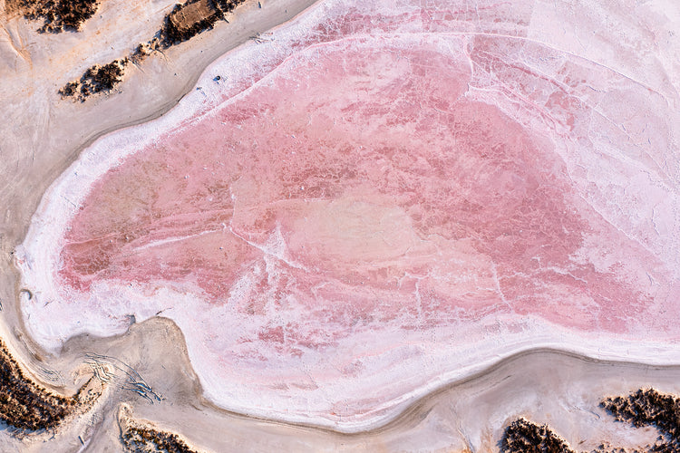 A natural pink carpet of salt laying about on the floor of Lake Tyrrell, Victoria