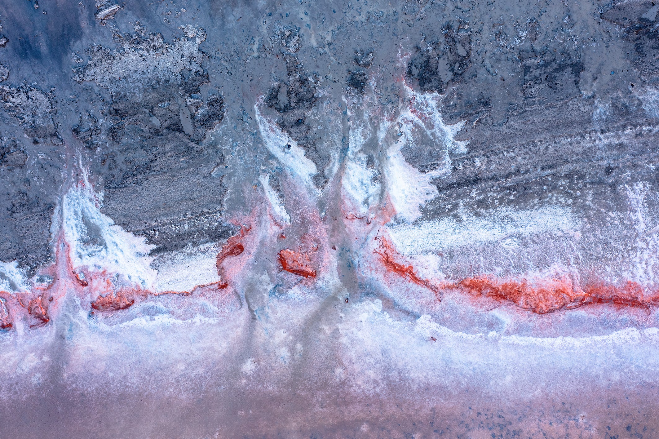 An unmanipulated photograph of the salty banks of Cockajemmy Lake in Victoria. I love how much this salt lake transforms itself naturally by sun, rain and evaporation over time, to provide us with an extraordinary array of colours and formations - like a tumultuous splash of waves at sea.