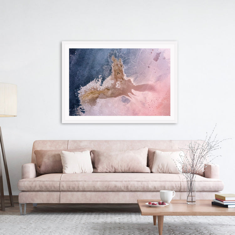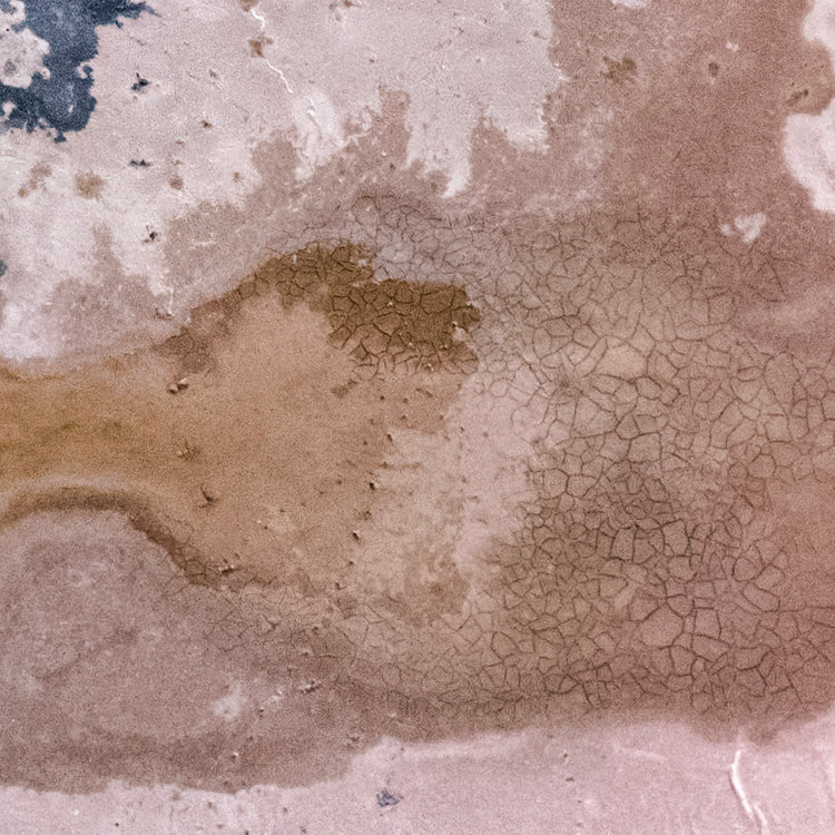 An unmanipulated photograph of the muddy banks of Lake Weering, a pink salt lake in Victoria. I look for stories found naturally in the shapes and colours of the landscape, stories suggestive of something familiar, such as a face, a scenery, or a fantastical creature dancing through space.